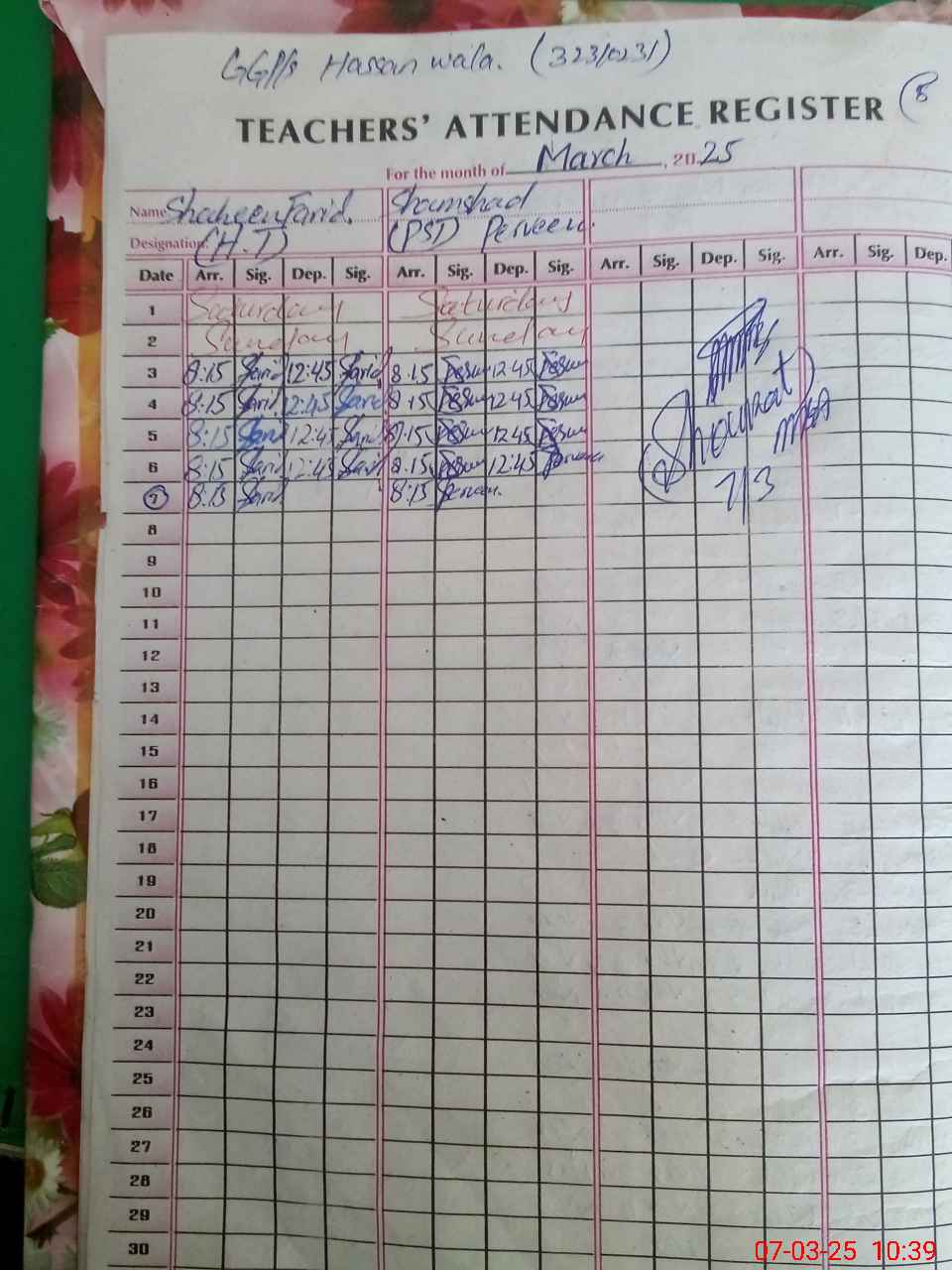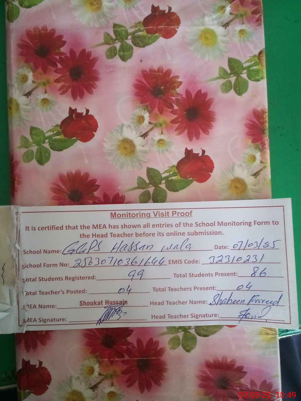 | EMIS Code: 32310231 | Name of School: GGPS HASSAN WALA | |||