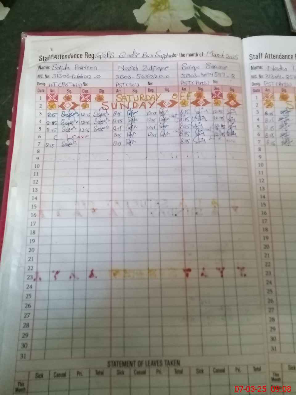 | 31**** | Me**** Bi**** | CHOWKIDAR | Regular | 28 | 0 | 0 | 0 | 0 | 0 | 0 | 28 | 0 | Earned |