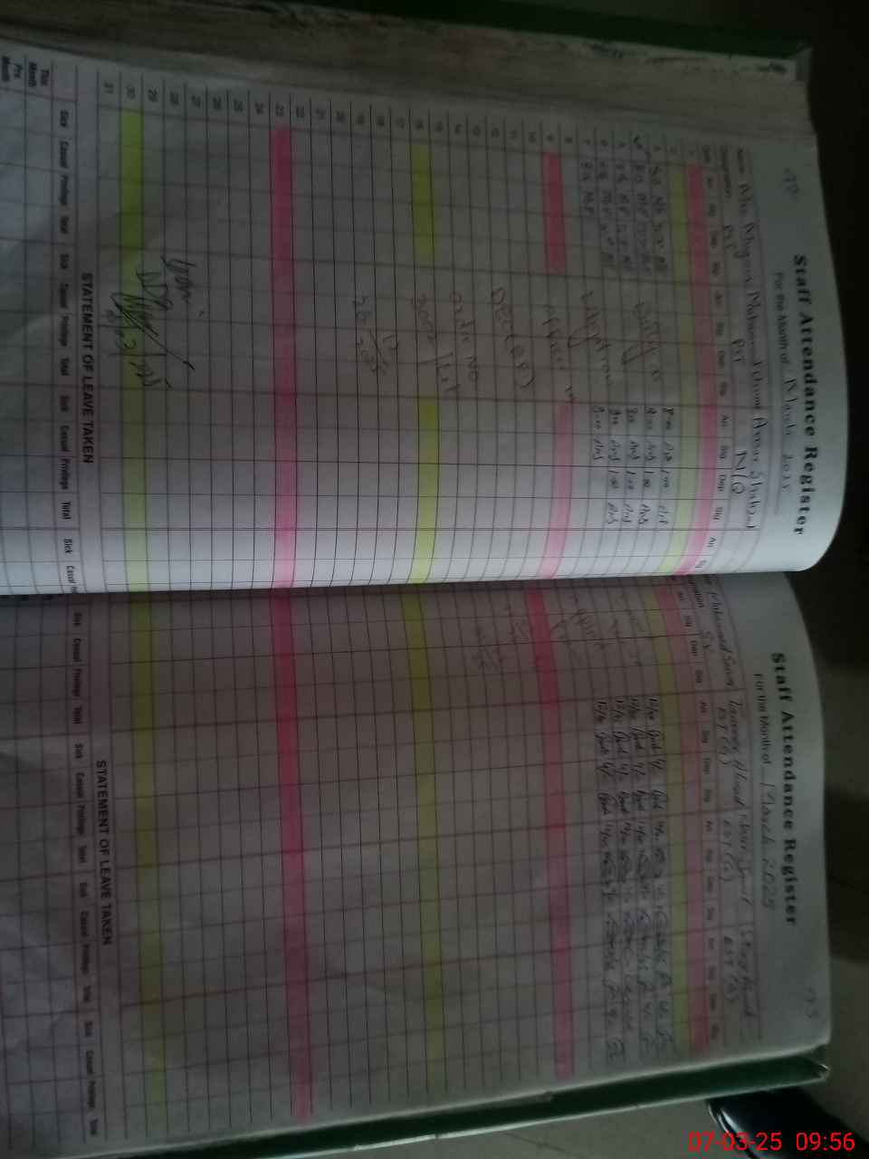 | 35**** | Af**** Sh**** | 1 | 1 | 0 | 0 | 0 | 0 | 0 | 0 | 0 | 0 | 0 | Exam Duty |