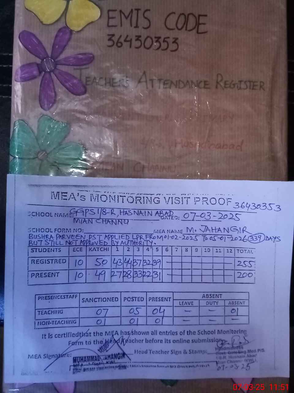 | EMIS Code: 36430353 | Name of School: GGPS HASNAIN ABAD MIAN CHANNU | |||