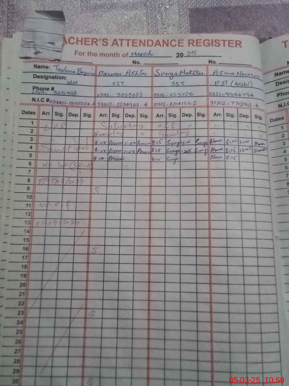 | Name: Pe**** Designation: (School Headmaster's/Headmistress's) Hmissteress Phone/Cell Number: 03**** |