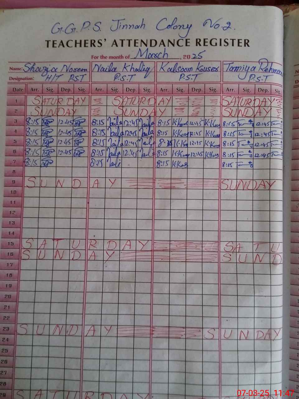 | No. of Students Present - Female | 14 | 0 | 40 | 37 | 34 | 30 | 38 | 33 | 226 | |||||||