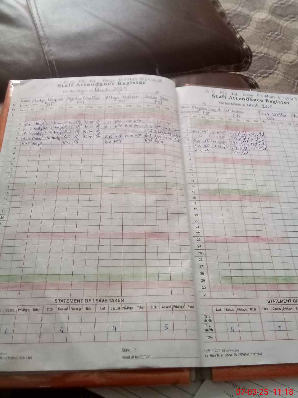 | Leave | Duty | Absent | Maternity | Medical | Ex- Pak |