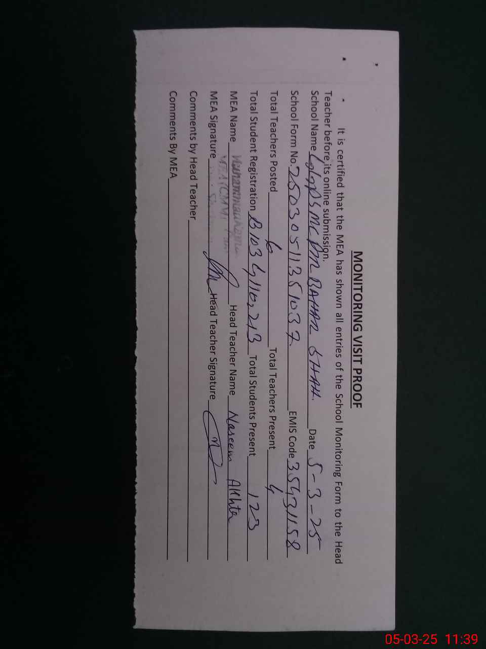 | EMIS Code: 35431158 | Name of School: GGPS MC PIR BAHAR SHAH | |||