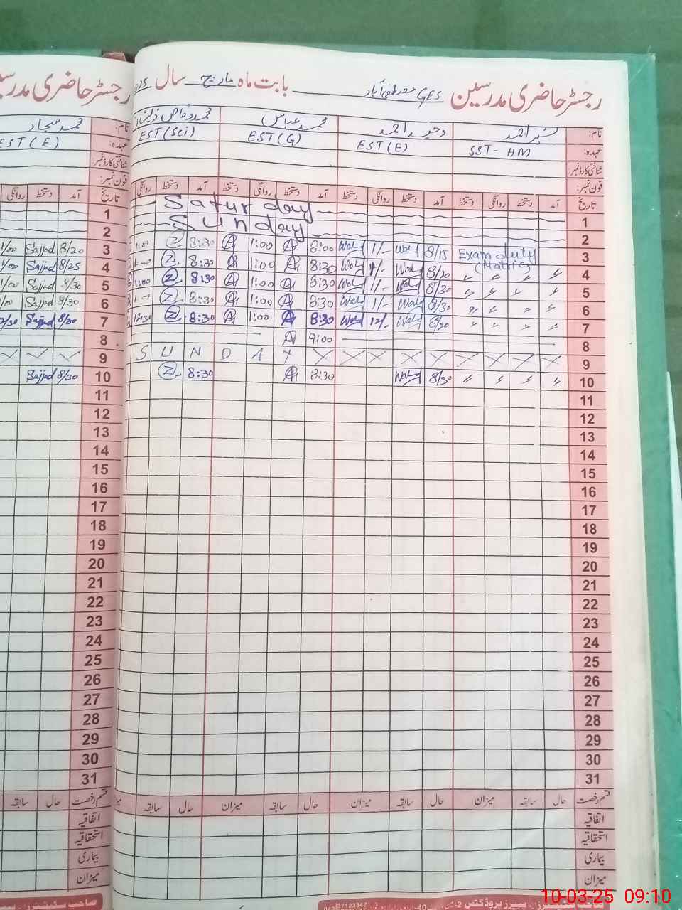 | 35**** | Ba**** Ah**** | SST | Regular | 0 | 0 | 0 | 0 | 0 | 0 | 0 | 0 | 0 | Exam Duty |