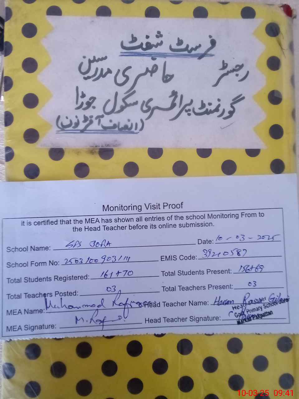 | EMIS Code: 39210587 | Name of School: GPS JORRA | |||