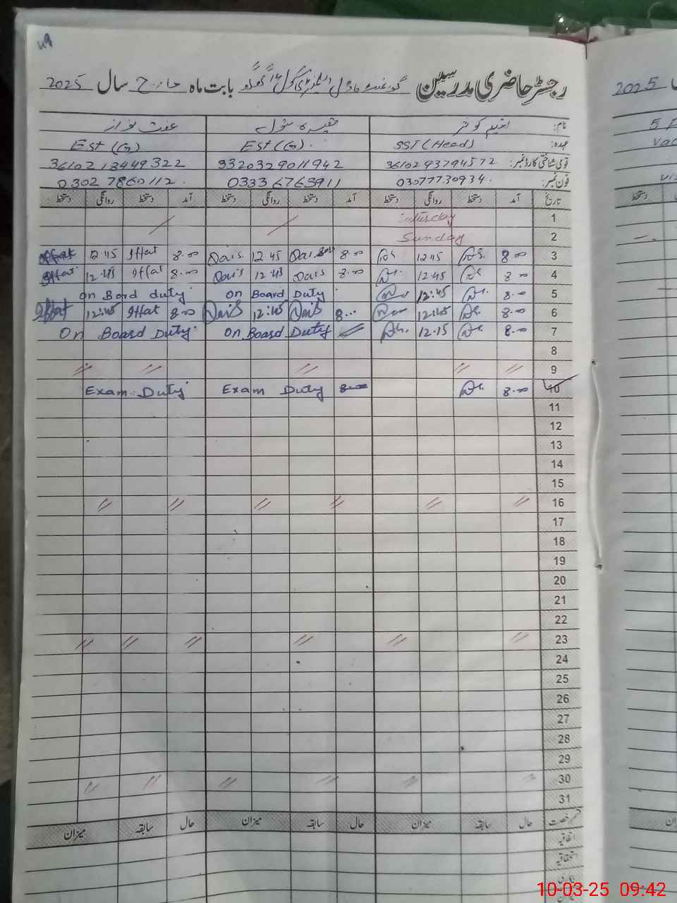 | 33**** | Qa**** Ba**** | EST | Regular | 0 | 0 | 0 | 0 | 0 | 0 | 0 | 0 | 0 | Exam Duty |