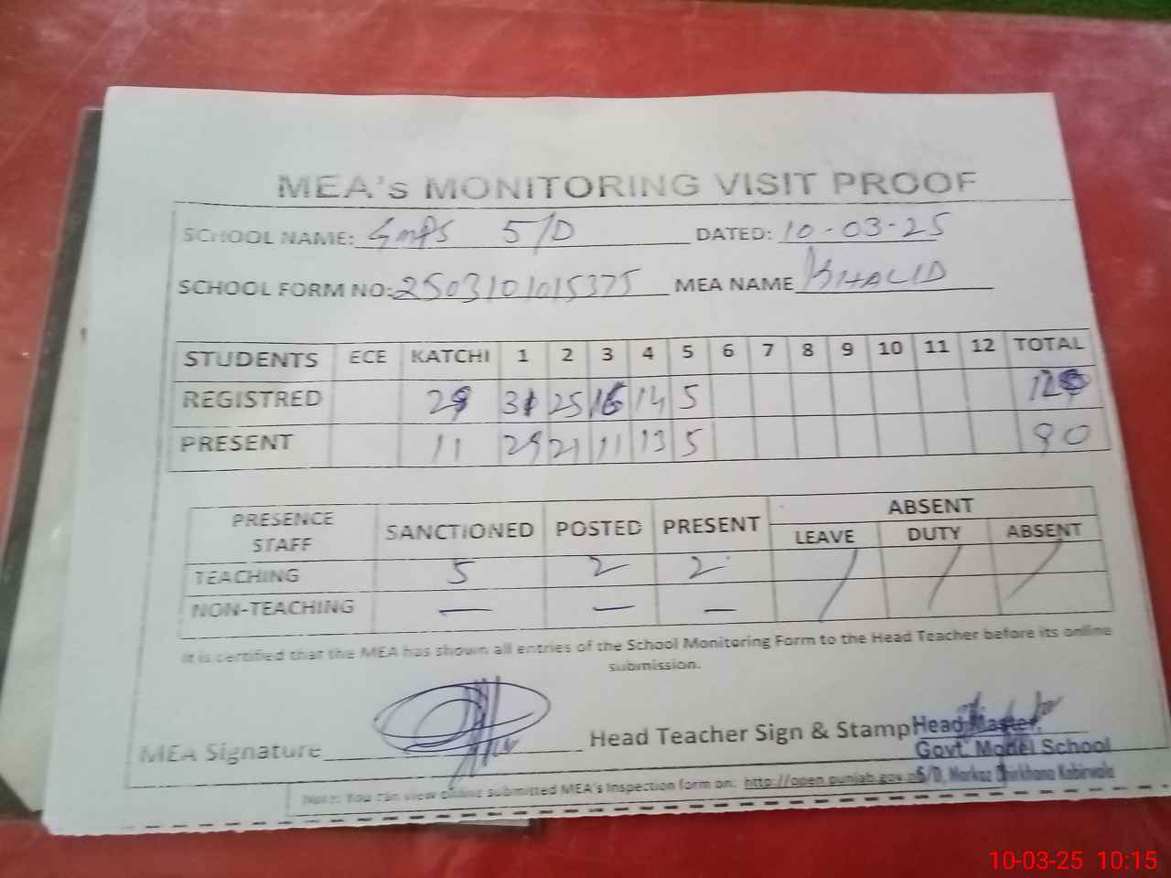 | EMIS Code: 36410466 | Name of School: GMES 5/D DARKHANA, ABDUL HAKIM | |||