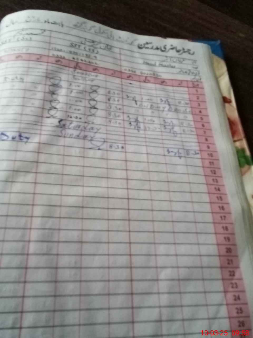 | 35**** | Sa**** Na**** | PST | Regular | 0 | 0 | 0 | 0 | 0 | 0 | 0 | 0 | 0 | Exam Duty |