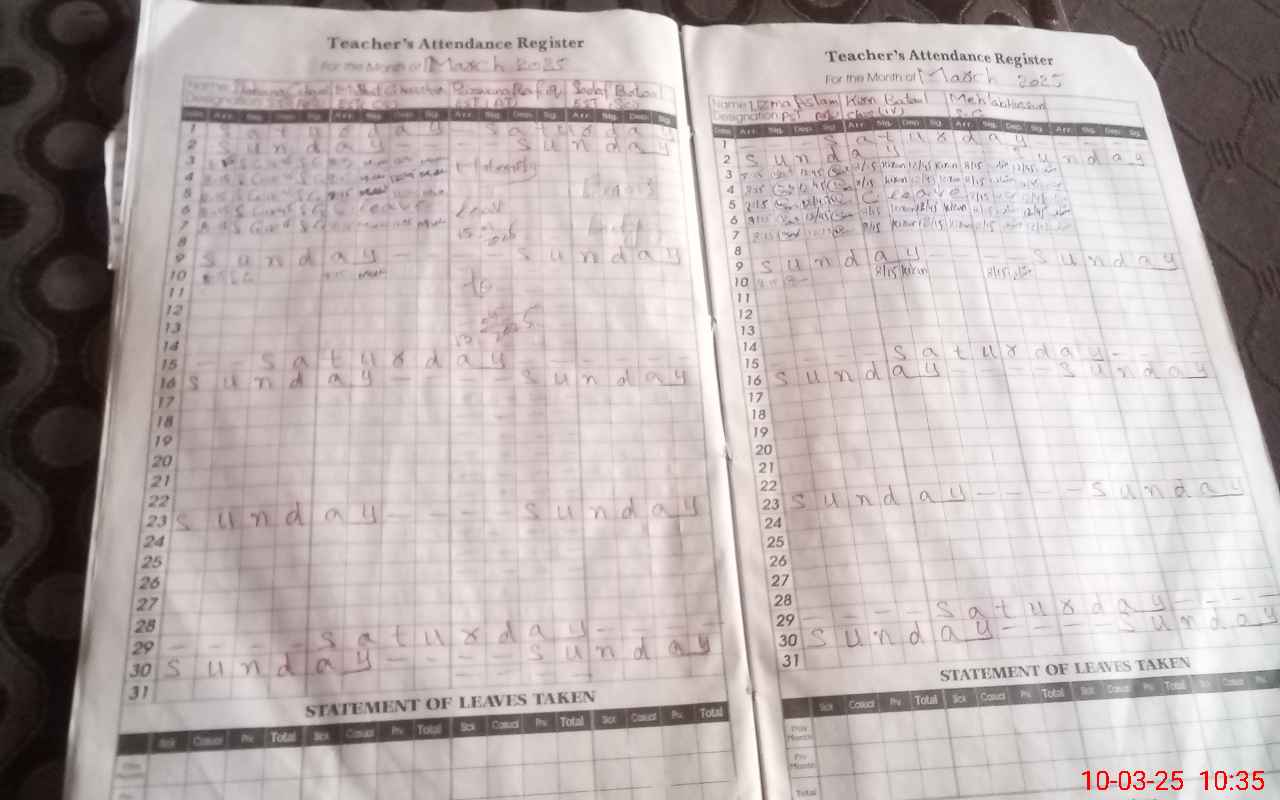 | 32**** | Sa**** Ba**** | EST | Regular | 0 | 0 | 0 | 0 | 0 | 0 | 0 | 0 | 0 | Exam Duty |