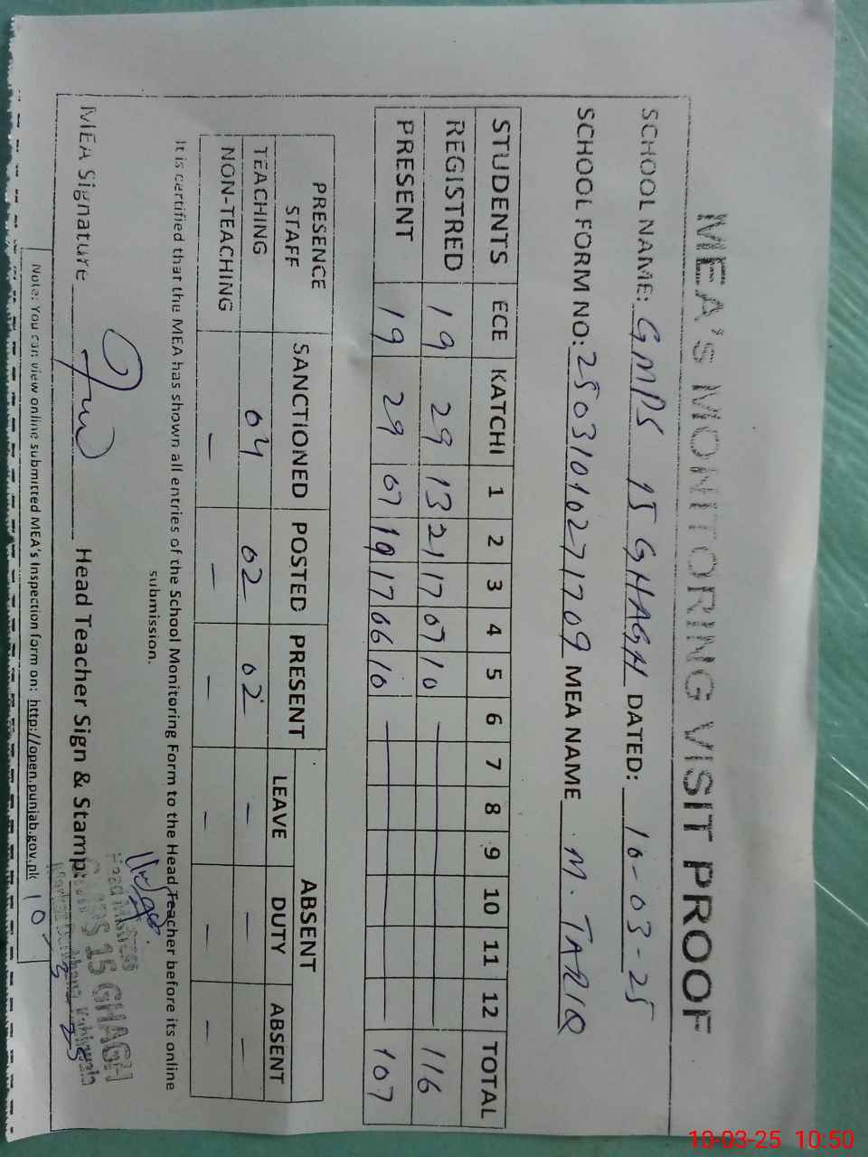| EMIS Code: 36410486 | Name of School: GMES 15 GHAGH, ABDUL HAKIM | |||