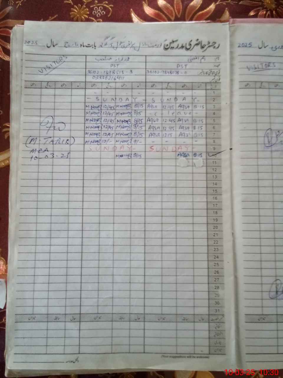 | Name: Um**** Aq**** Designation: (School Headmaster's/Headmistress's) ESE(ARTS) Phone/Cell Number: 03**** |