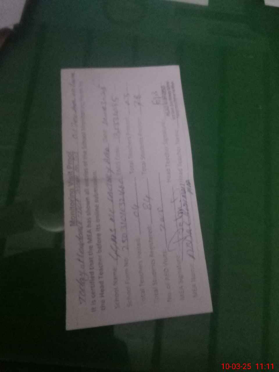 | Monitoring Date: 10-03-2025 | Start Time: 10-03-2025 10:32 AM | End Time: 10-03-2025 11:12 AM | Name of MEA: Ab**** Re**** | |