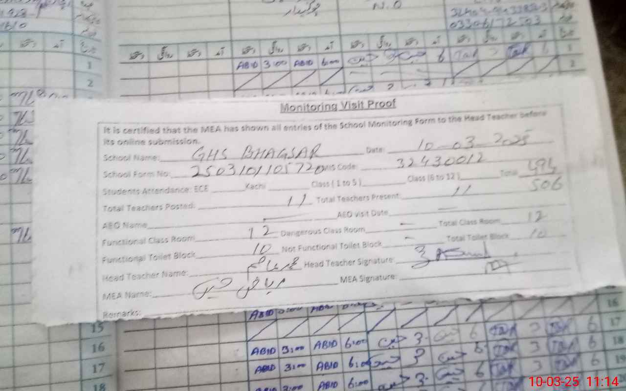 | EMIS Code: 32430012 | Name of School: GHS BHAGSAR | |||