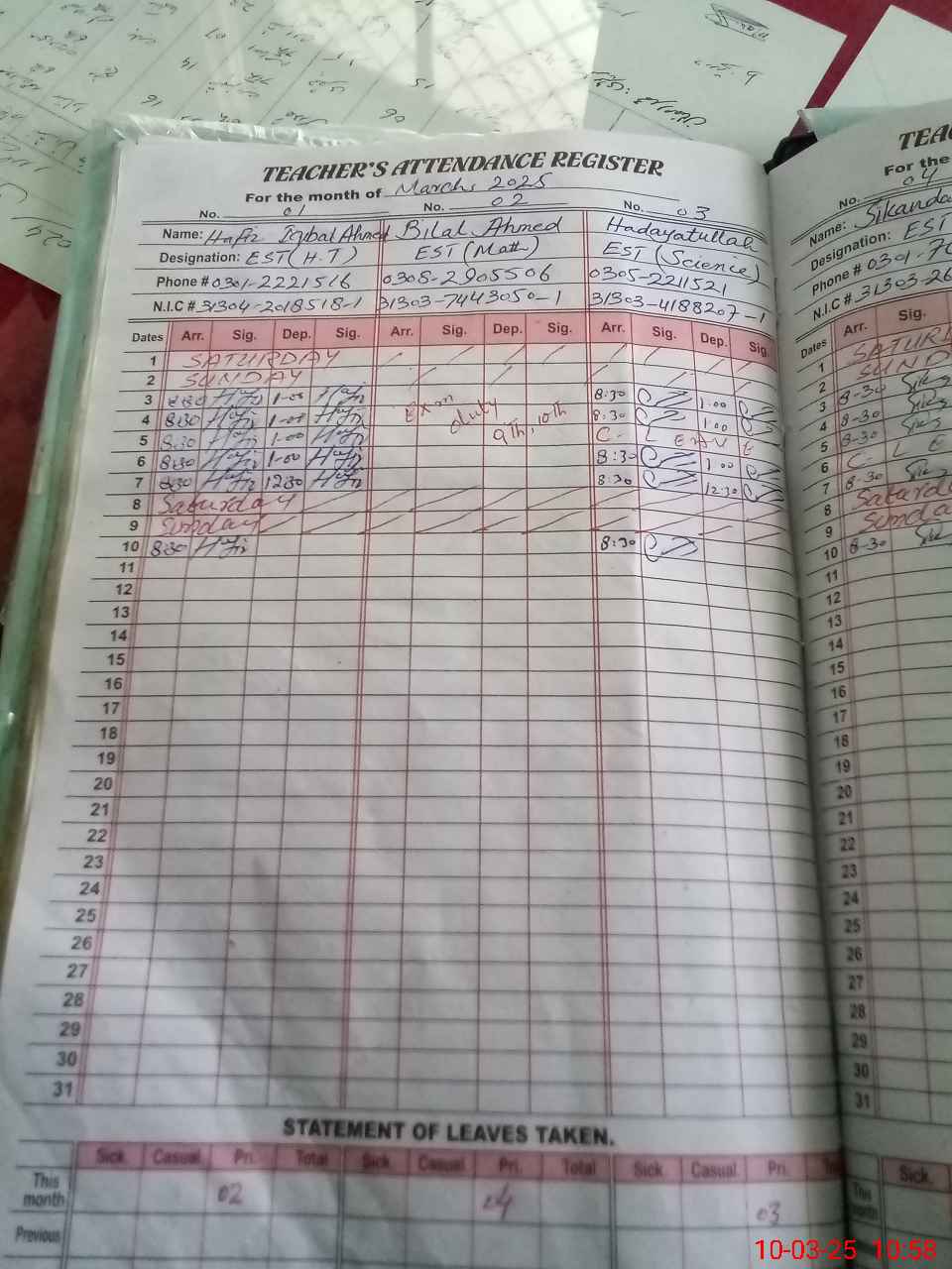 | Name: Mu**** Iq**** Designation: (School Headmaster's/Headmistress's) Sv Phone/Cell Number: 03**** |
