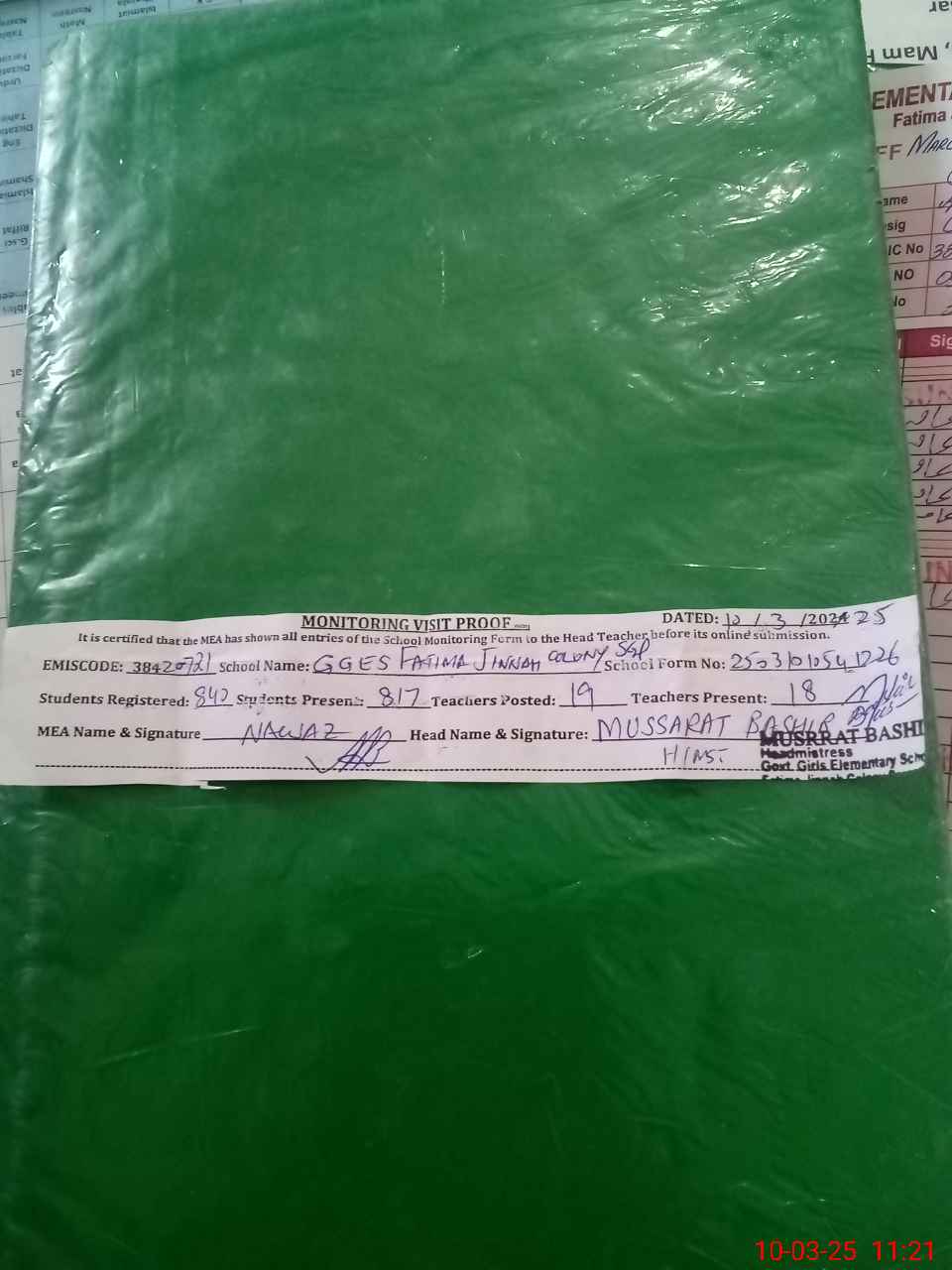 | EMIS Code: 38420721 | Name of School: GGES FATIMA JINNAH COLONY | |||