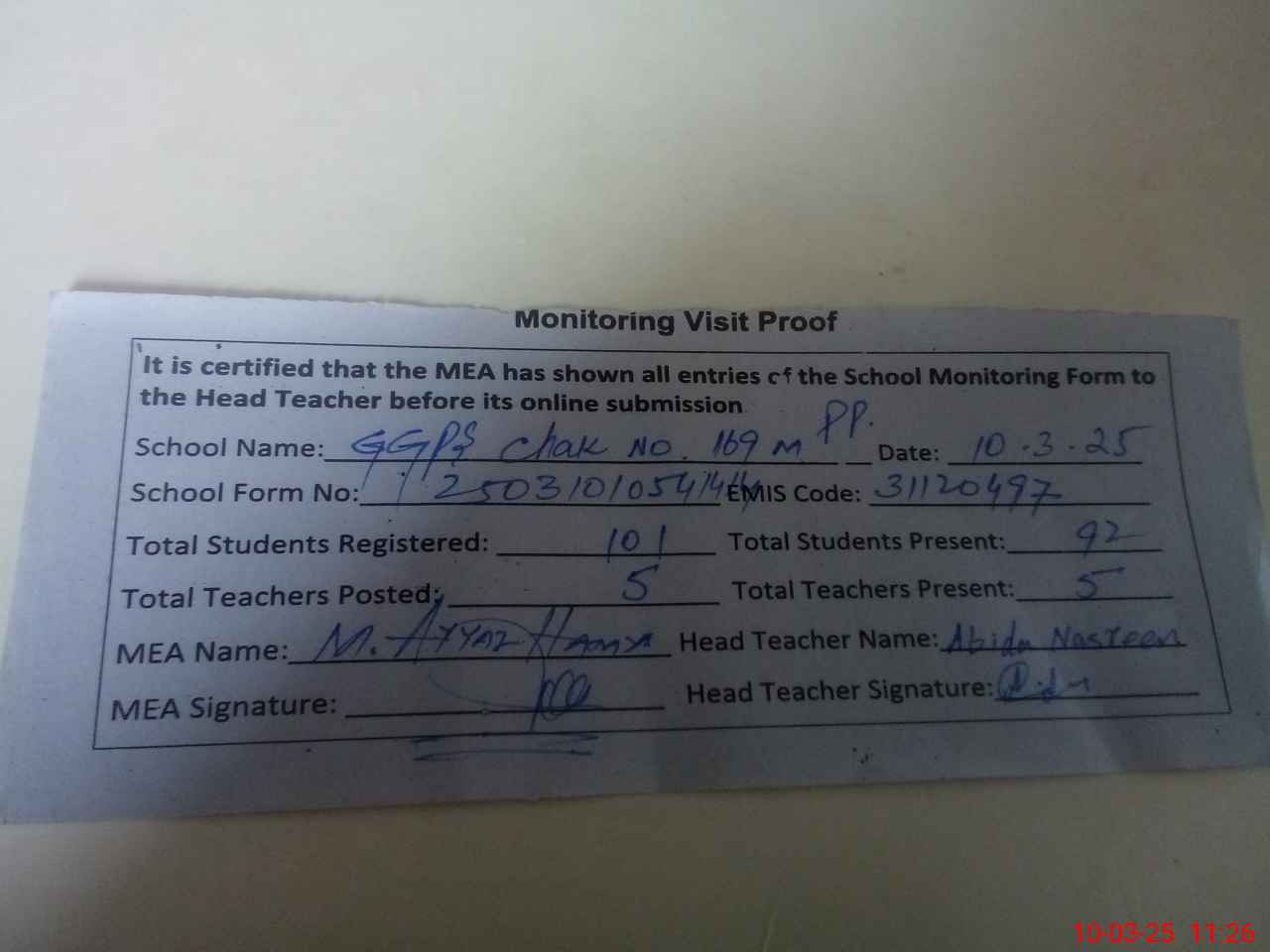 | EMIS Code: 31120497 | Name of School: GGPS 169/M BASTI P.P | |||