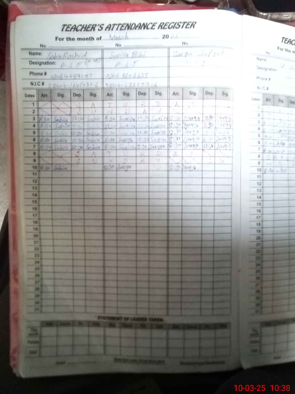 | Name: SO**** RA**** Designation: (School Headmaster's/Headmistress's) PST Phone/Cell Number: 03**** |