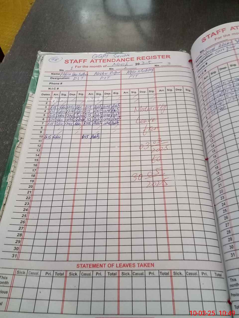 | Leave | Duty | Absent | Maternity | Medical | Ex- Pak |