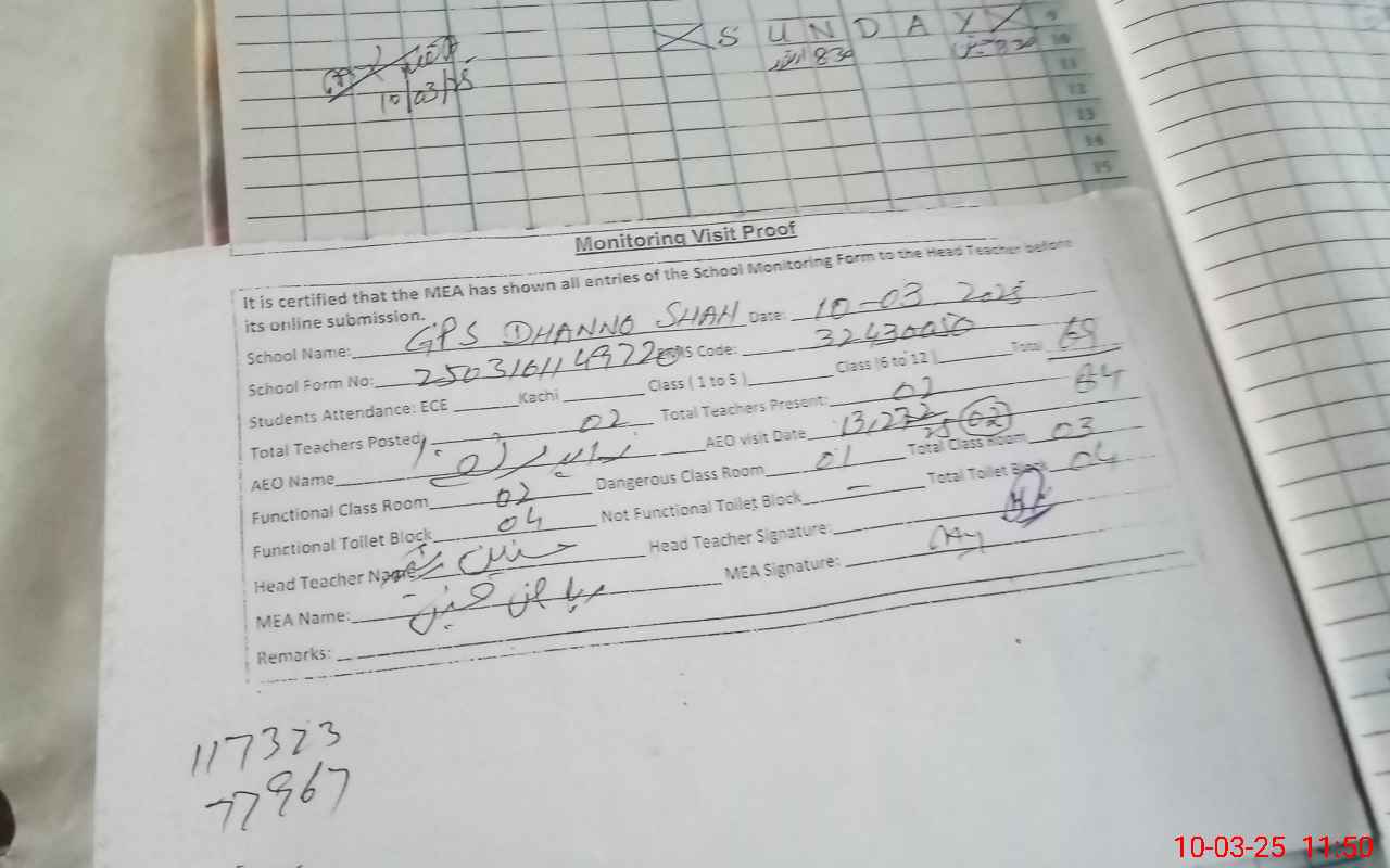| EMIS Code: 32430050 | Name of School: GPS DHANNO SHAH | |||
