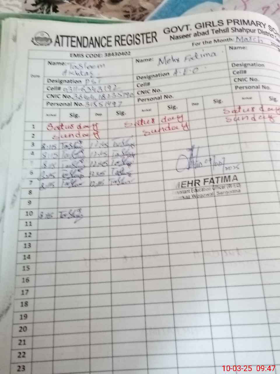 | Name: TA**** AK**** Designation: (School Headmaster's/Headmistress's) PST Phone/Cell Number: 03**** |