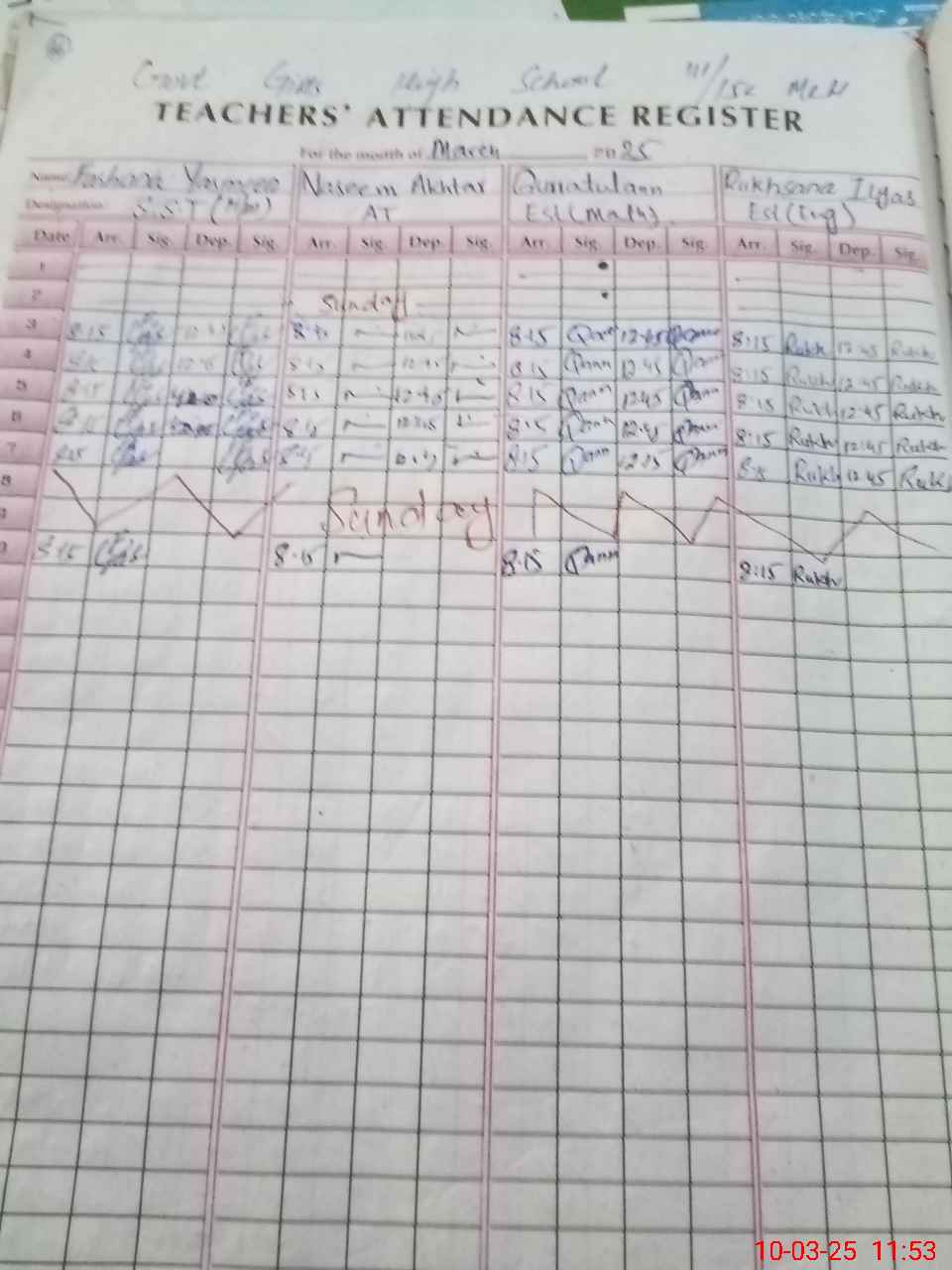 | School Visited by School Health & Nutrition Supervisor (No. of Visits) | 1 | Name1: | Naseem Akhtar | Name2: | Nil |