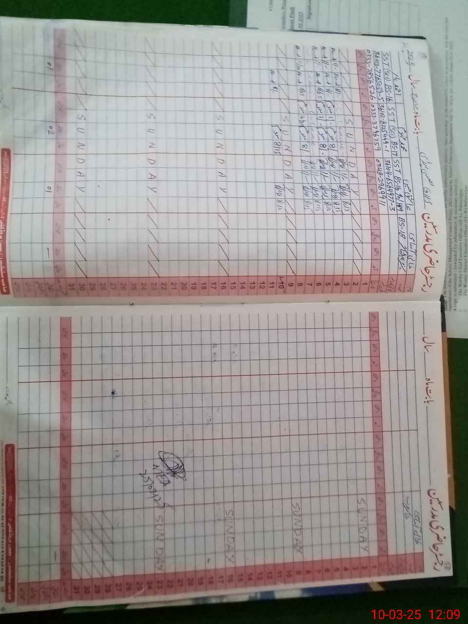 | CNIC | Full Name | Designation | R/C | Absence During Last Calender Month |
