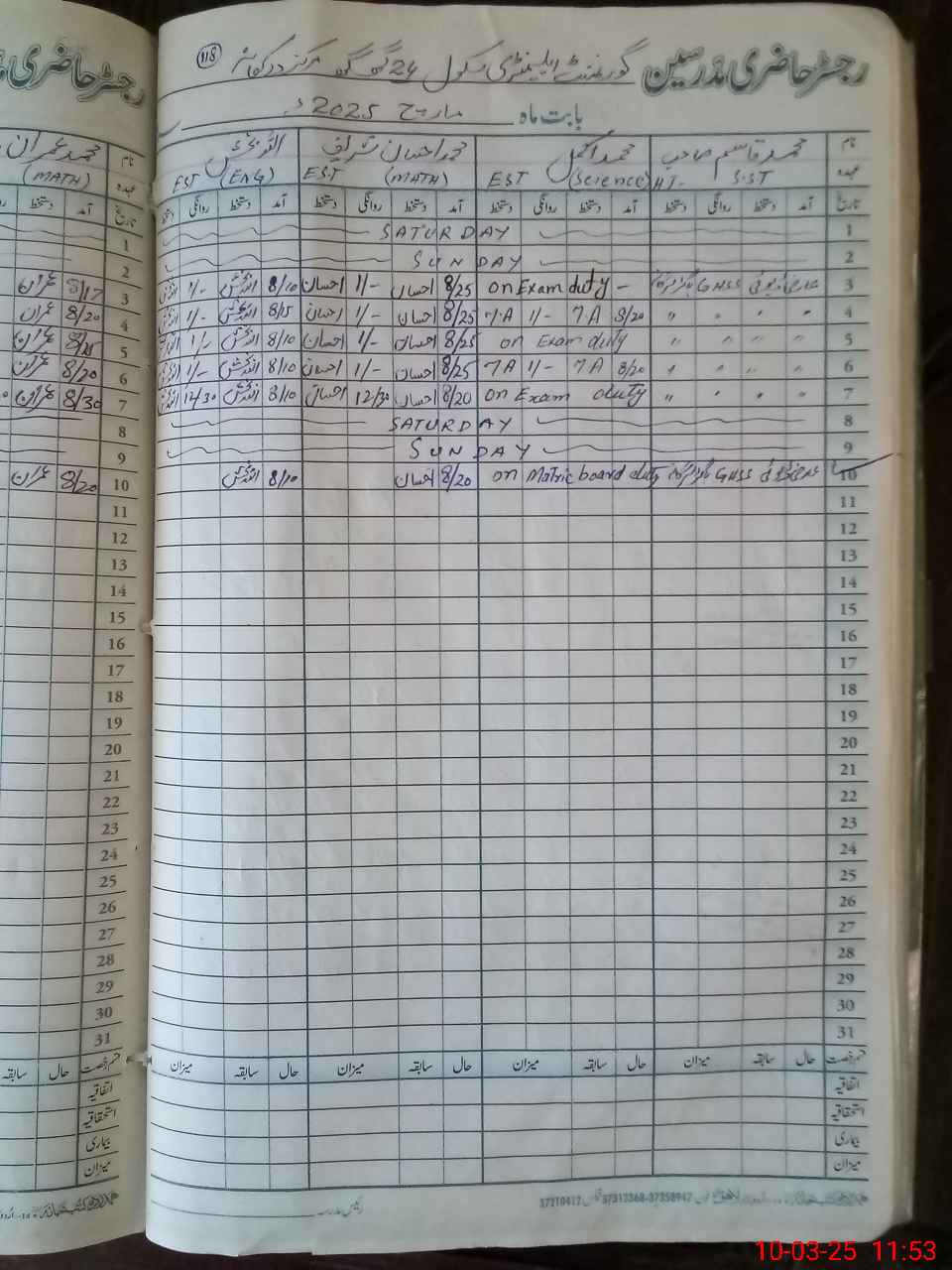 | 36**** | Mu**** Ak**** | 3 | 1 | 0 | 0 | 0 | 0 | 0 | 0 | 0 | 0 | 0 | Exam Duty |