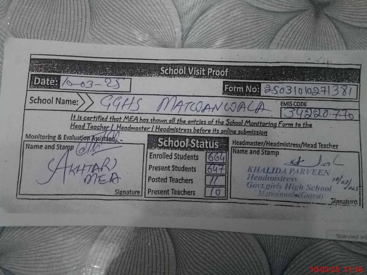 | EMIS Code: 34220770 | Name of School: GGHS MATWANWALA | |||