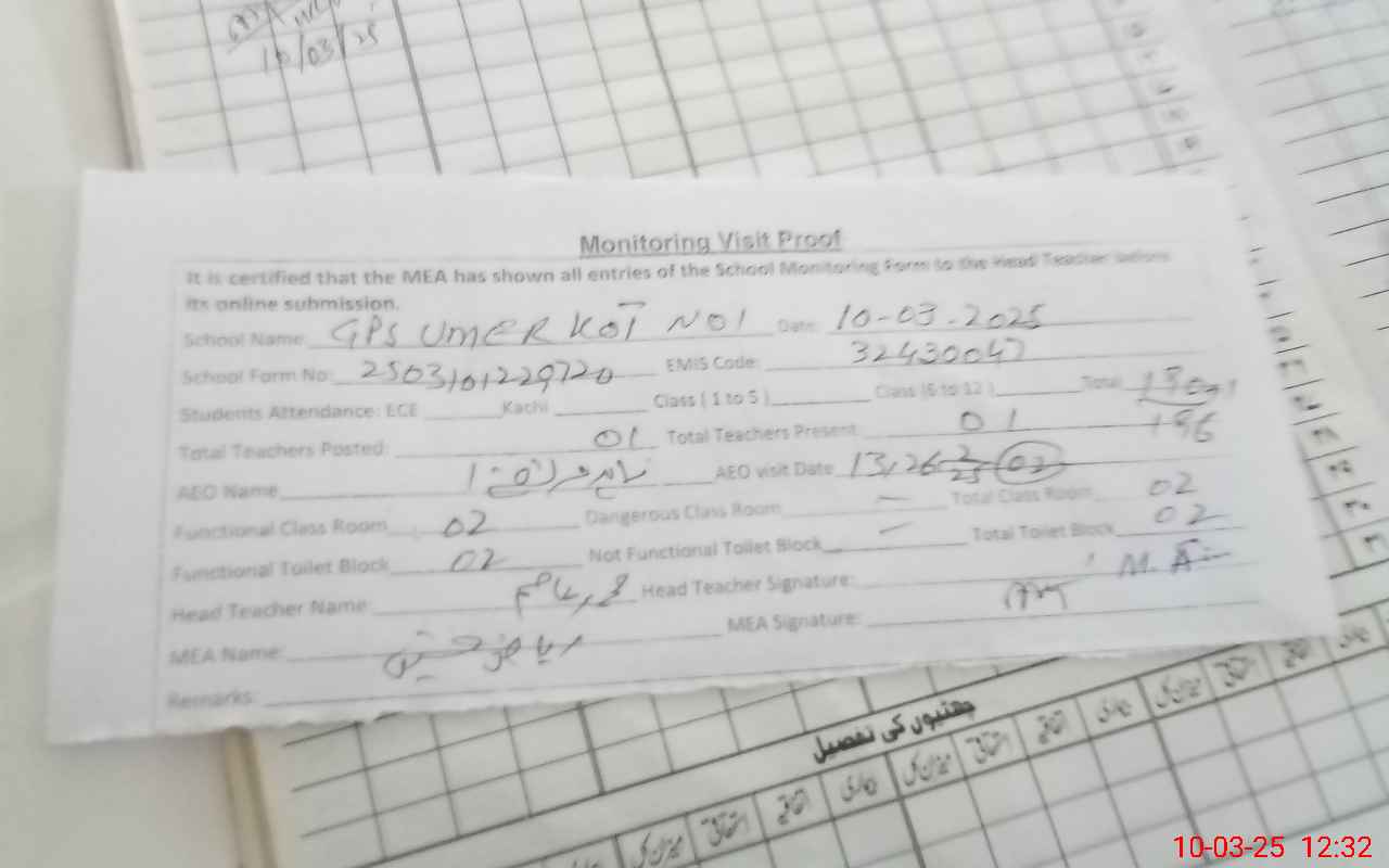 | EMIS Code: 32430047 | Name of School: GPS UMER KOT NO. 1 | |||