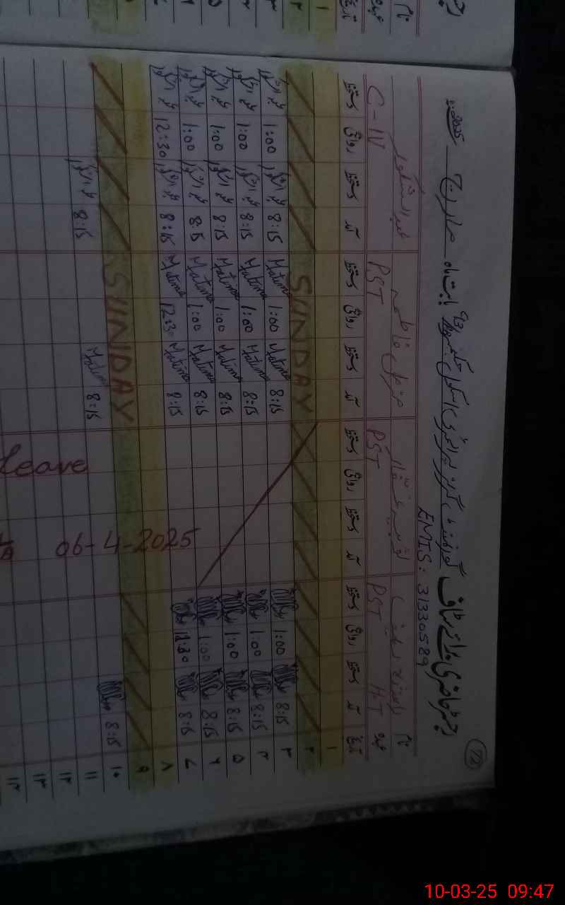 | CNIC | Full Name | Designation | R/C | Absence During Last Calender Month |