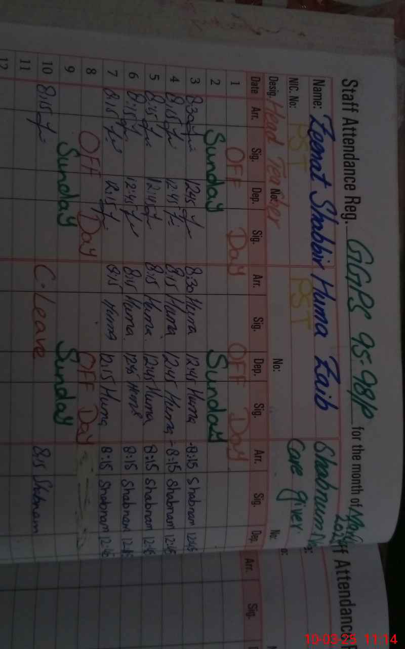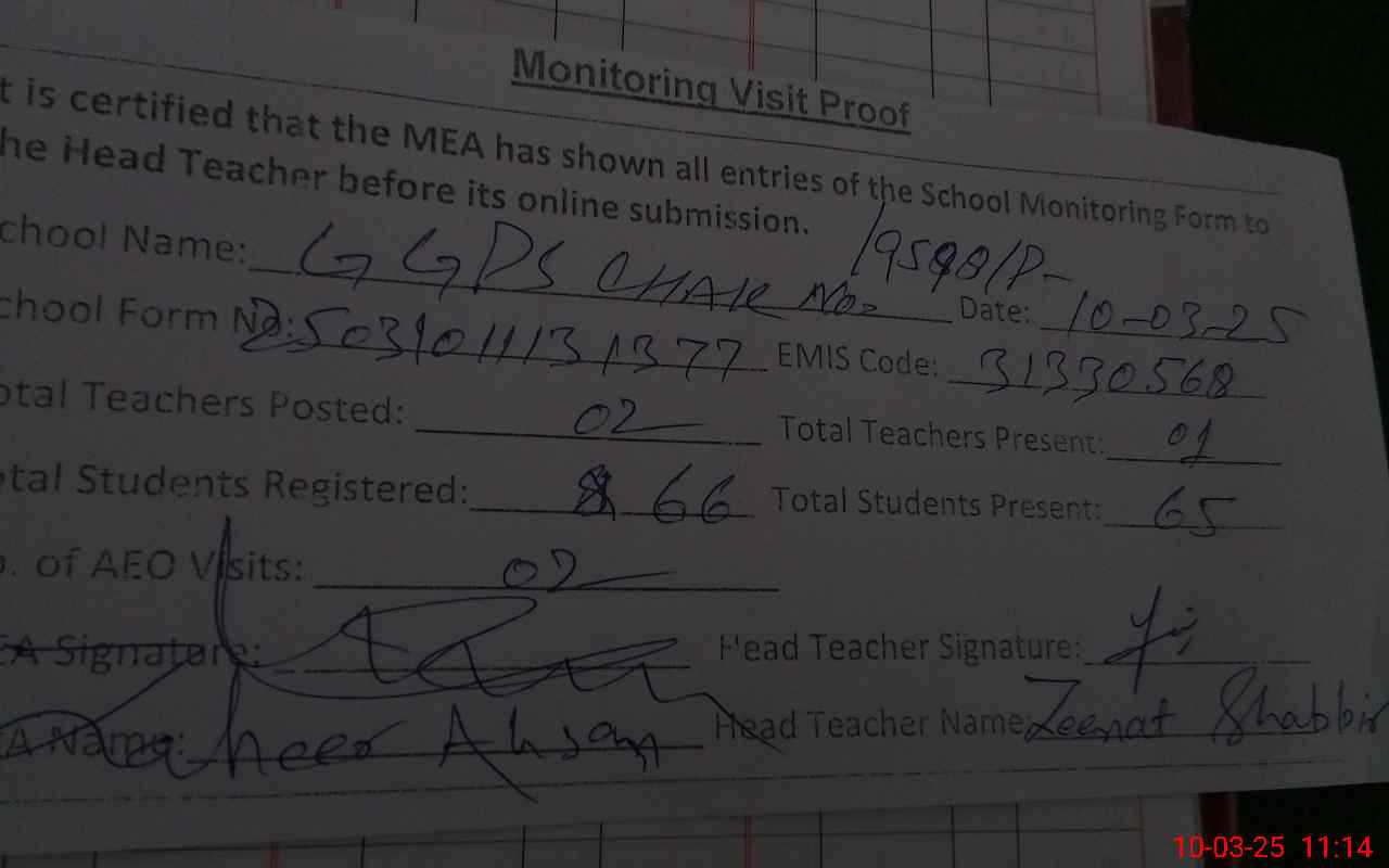 | Name: Ze**** Sh**** Designation: (School Headmaster's/Headmistress's) PST Phone/Cell Number: 03**** |
