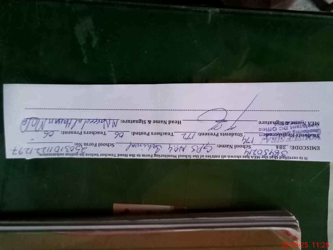 | Certified that this School was Inspected by the Undersigned MEA/DMO Today and the Information Stated Above is as Per Record. | |||||