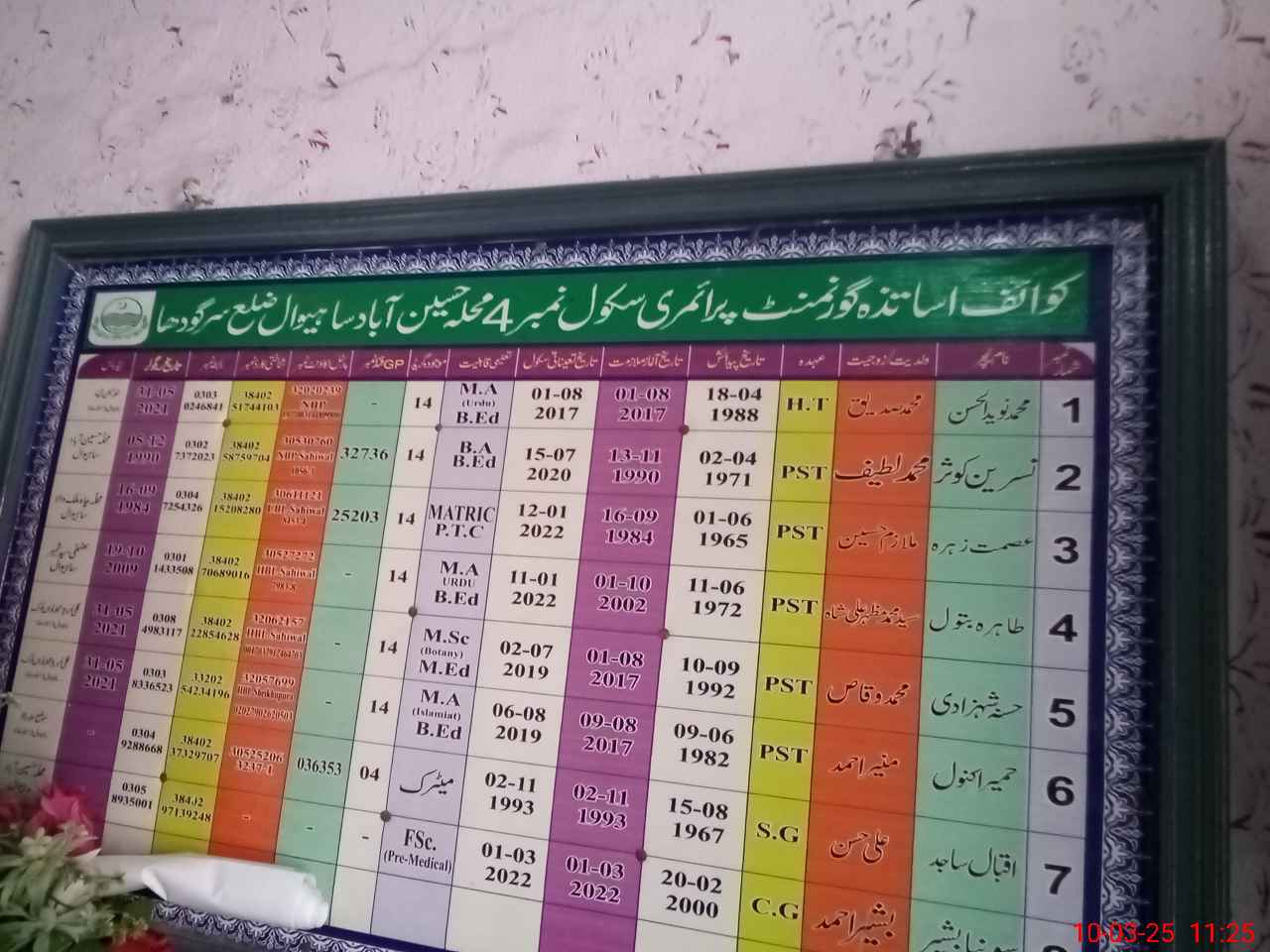 | EMIS Code: 38450214 | Name of School: GPS NO.4 SAHIWAL | |||