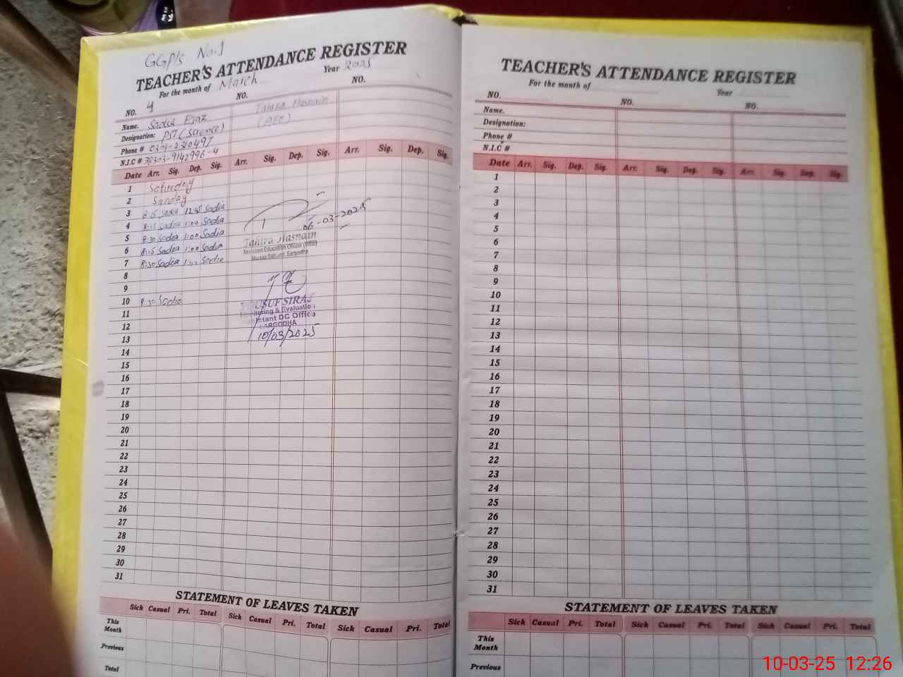| Name: NA**** AK**** Designation: (School Headmaster's/Headmistress's) ESE (ARTS) Phone/Cell Number: 03**** |
