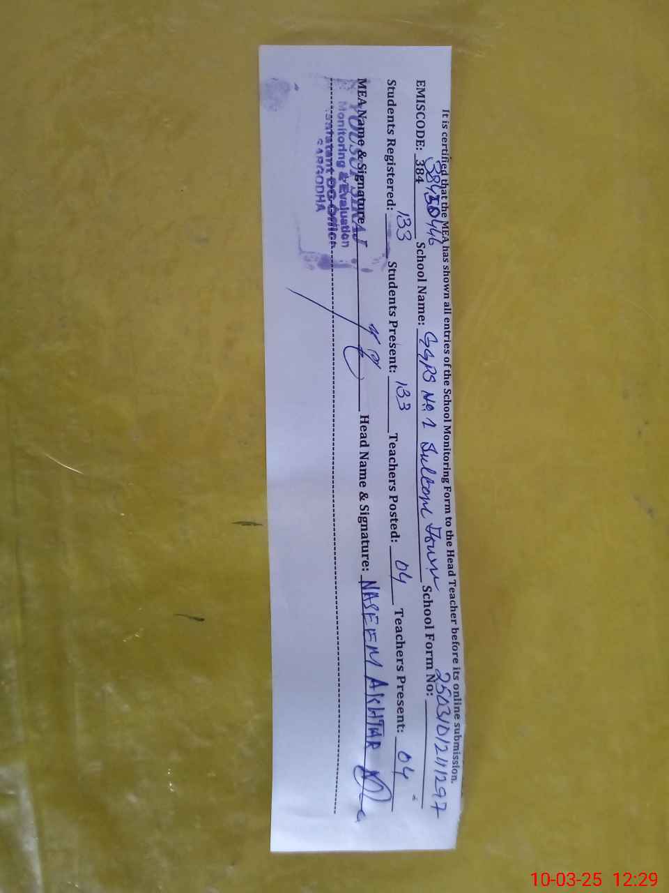 | EMIS Code: 38450446 | Name of School: GGPS NO.1 SAHIWAL | |||