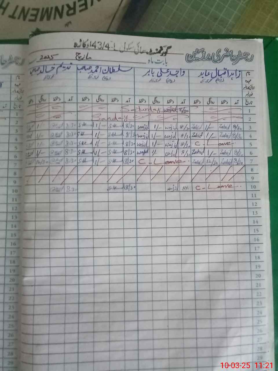 | 35**** | Ha**** UrRe**** | Regular | 2 | 0 | 0 | 0 | 0 | 0 | 0 | 0 | 2 | Exam Duty | |
