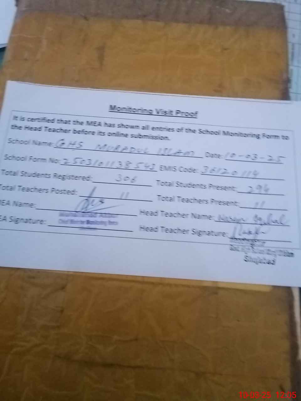 | EMIS Code: 36120114 | Name of School: GHS MURAD-UL-ISLAM SHUJABAD | |||