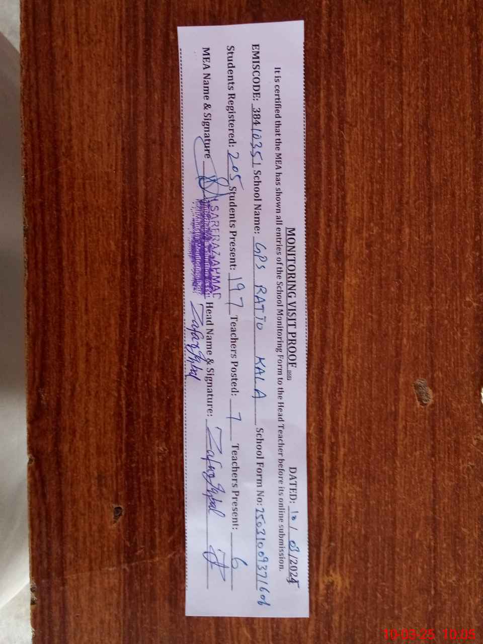 | EMIS Code: 38410351 | Name of School: GPS RATTO KALA | |||