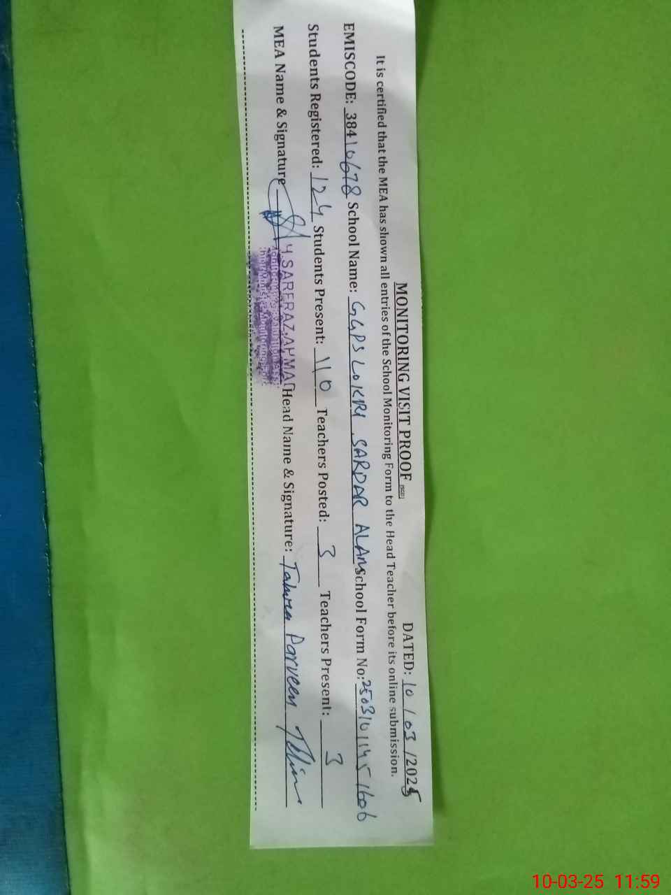| EMIS Code: 38410678 | Name of School: GGPS LOKRI SARDAR ALAM | |||
