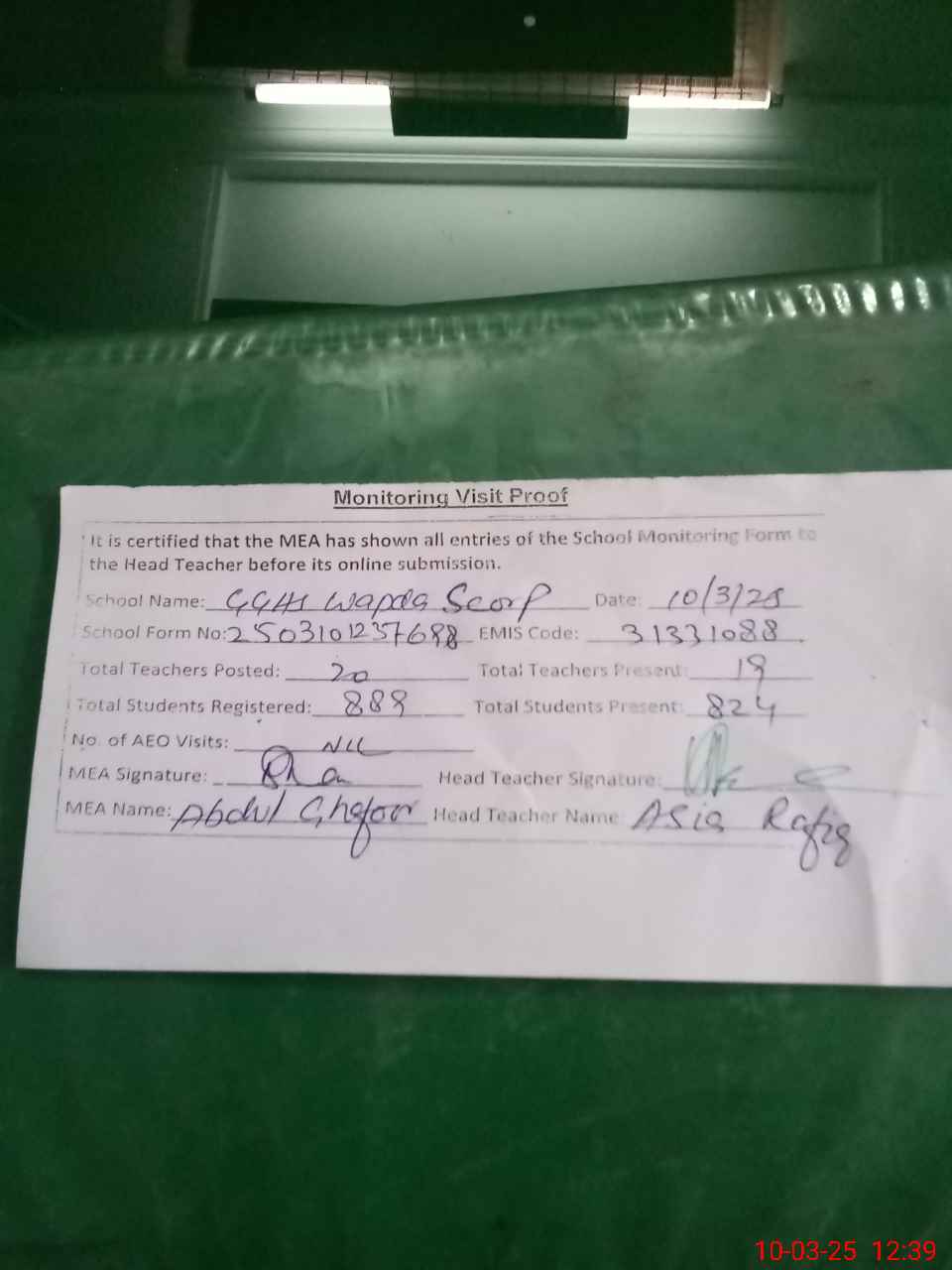 | EMIS Code: 31331088 | Name of School: GGHS WAPDA SCORP RYK | |||