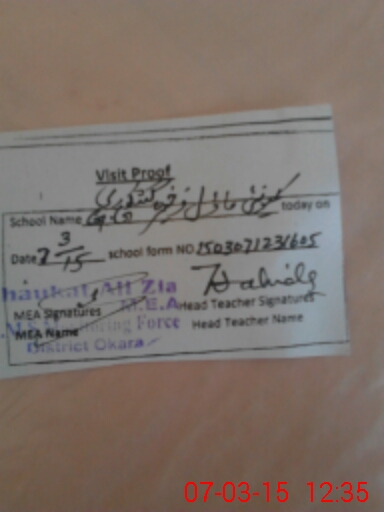 | Name: Uz**** Fa**** Designation: (School Headmaster's/Headmistress's) HEADMASTER Phone/Cell Number: 03**** |