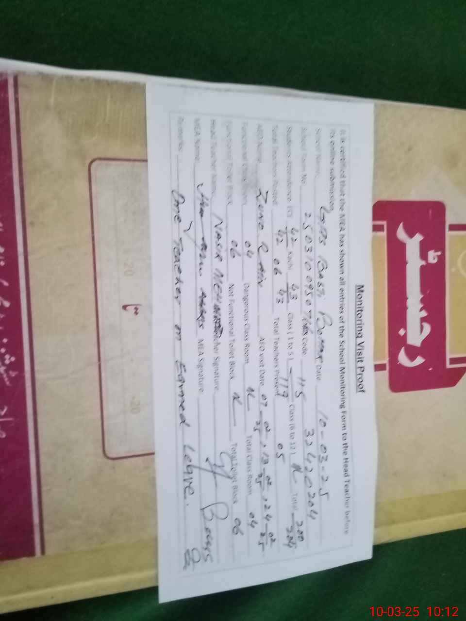 | Attendance Register | Head Teacher | MEA with School | Visit Proof |