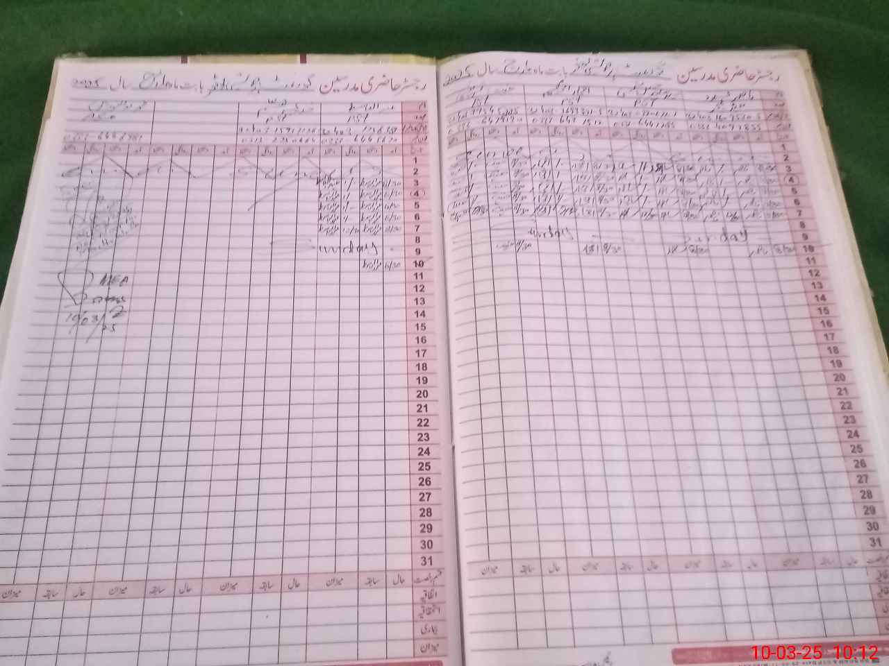 | CNIC | Full Name | Designation | R/C | Absence During Last Calender Month |