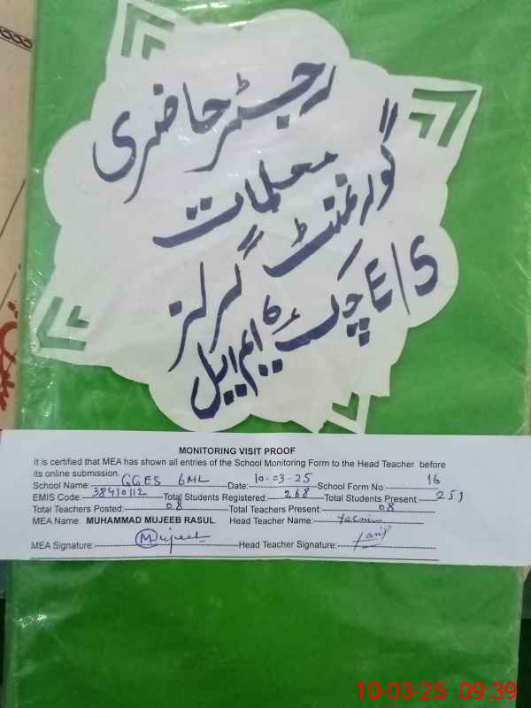 | EMIS Code: 38410112 | Name of School: GGES CHAK NO.6 ML | |||