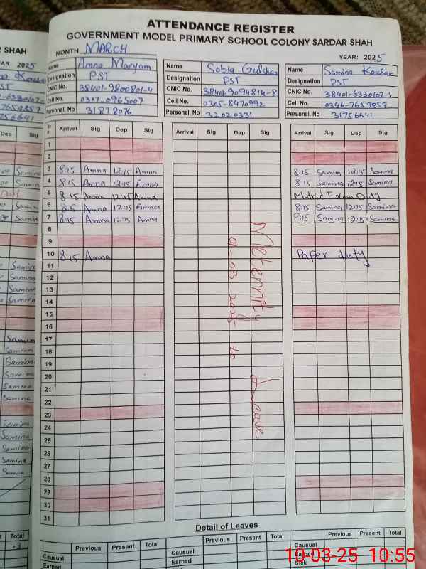 | 38**** | Sa**** Ko**** | PST | Regular | 0 | 0 | 0 | 0 | 0 | 0 | 0 | 0 | 0 | Exam Duty |