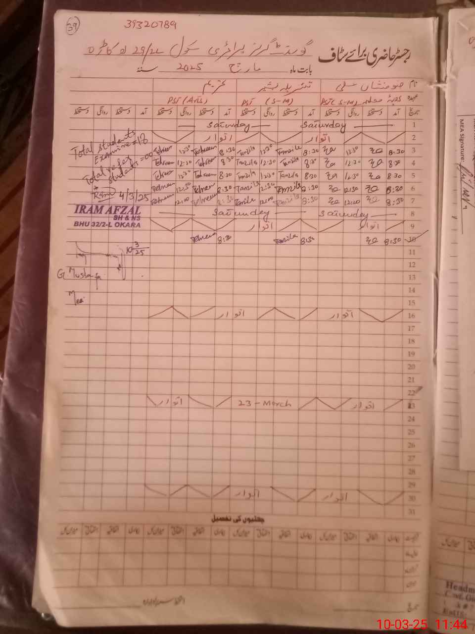 | Name: Zu**** Al**** Designation: (School Headmaster's/Headmistress's) PST Phone/Cell Number: 03**** |