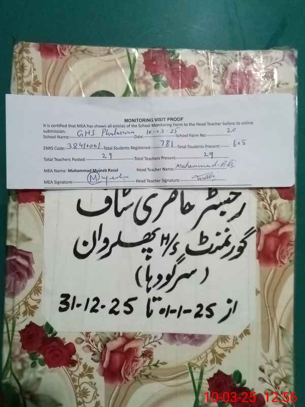 | EMIS Code: 38410001 | Name of School: GHS PHULARWAN | |||