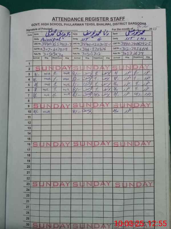 | Name: Fa**** Ah**** Ra**** Designation: (School Headmaster's/Headmistress's) Principal Phone/Cell Number: 03**** |