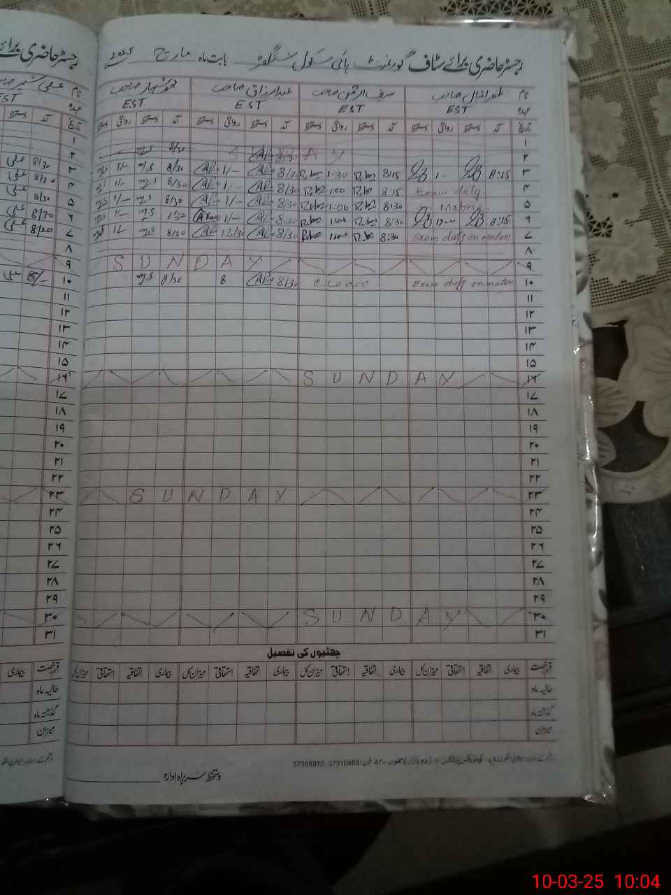 | 35**** | Za**** Iq**** | Regular | 3 | 0 | 0 | 0 | 0 | 0 | 0 | 0 | 3 | Exam Duty | |